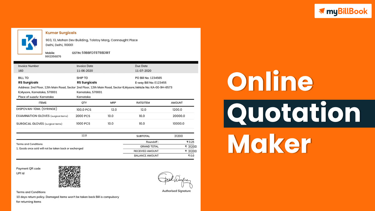 Online Quotation Maker | Free Quotation Generator myBillBook